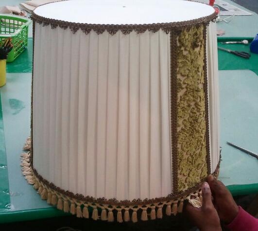 One of my staff spend most of the day pinning and pleating this shade. and she is not even halfway.... Its BIG. I always have to check the weight of the fabric and fullness, so that the pendant dont become to heavy.